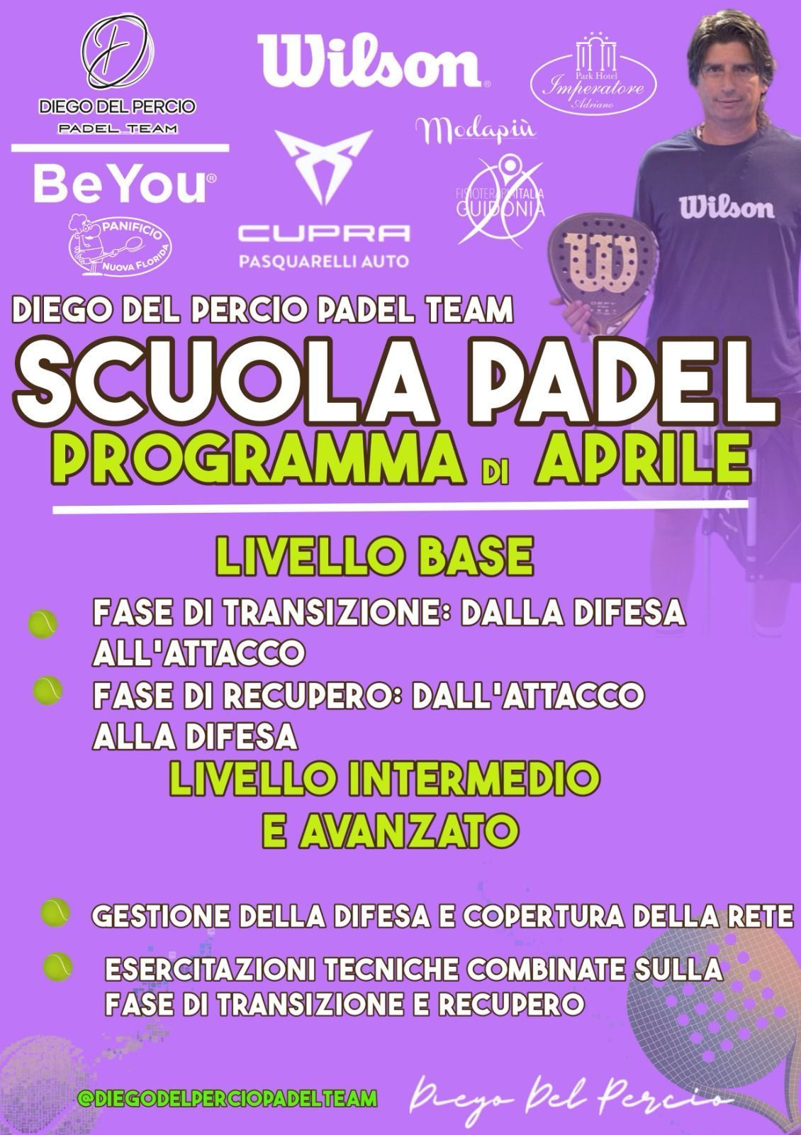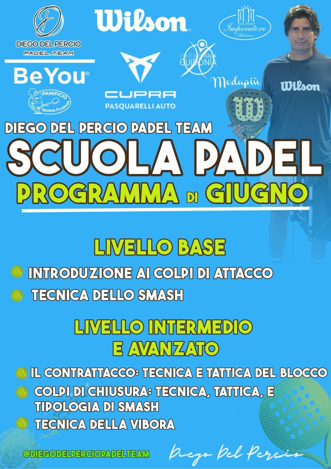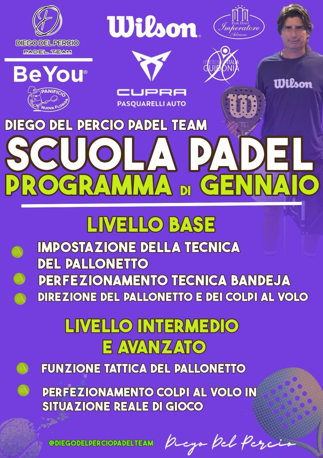 Presso il Diego del Percio Padel Team, offrendo sessioni di allenamento individuale e di gruppo una vasta gamma di programmi di formazione personalizzati adatti a giocatori di tutti i livelli.