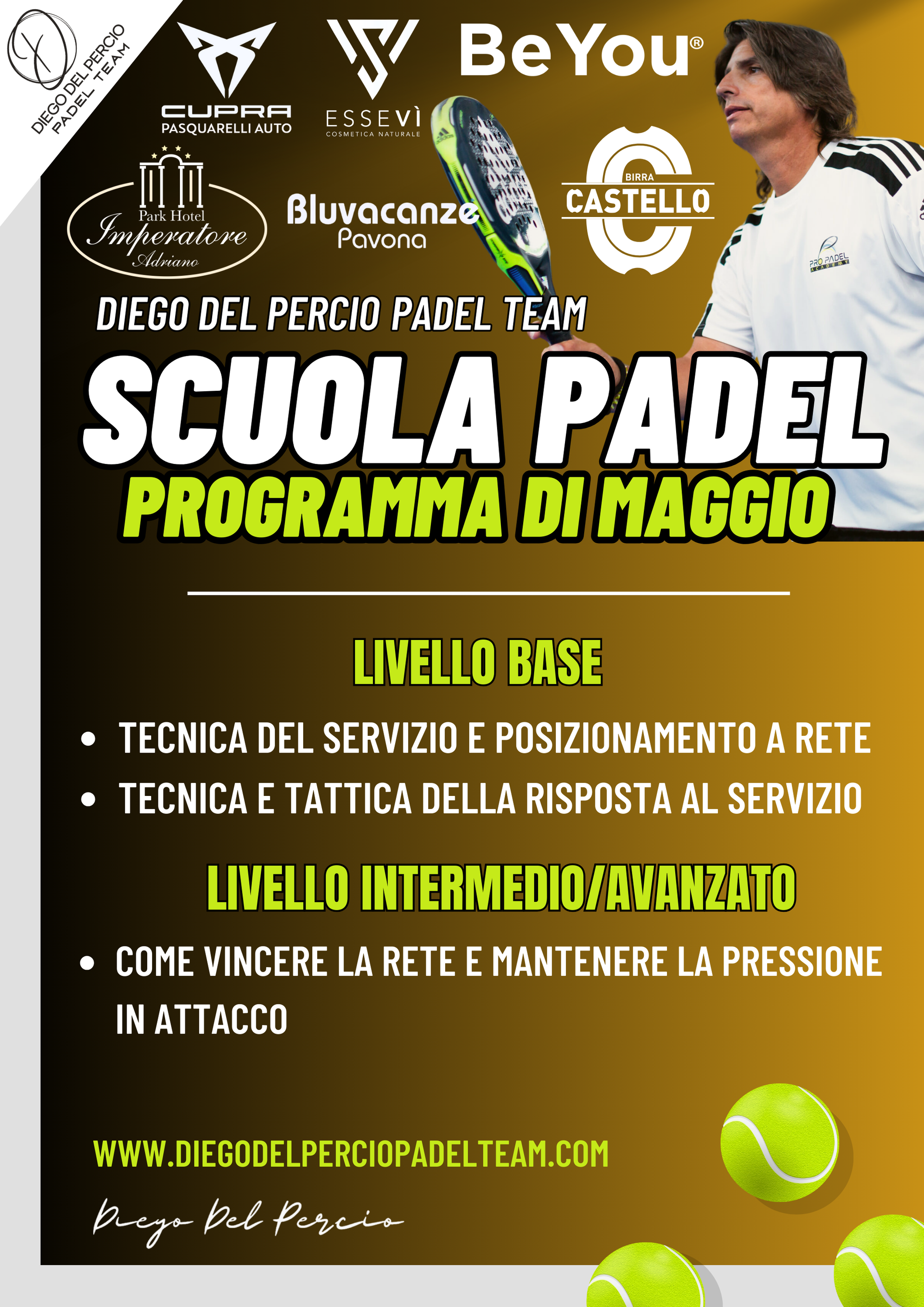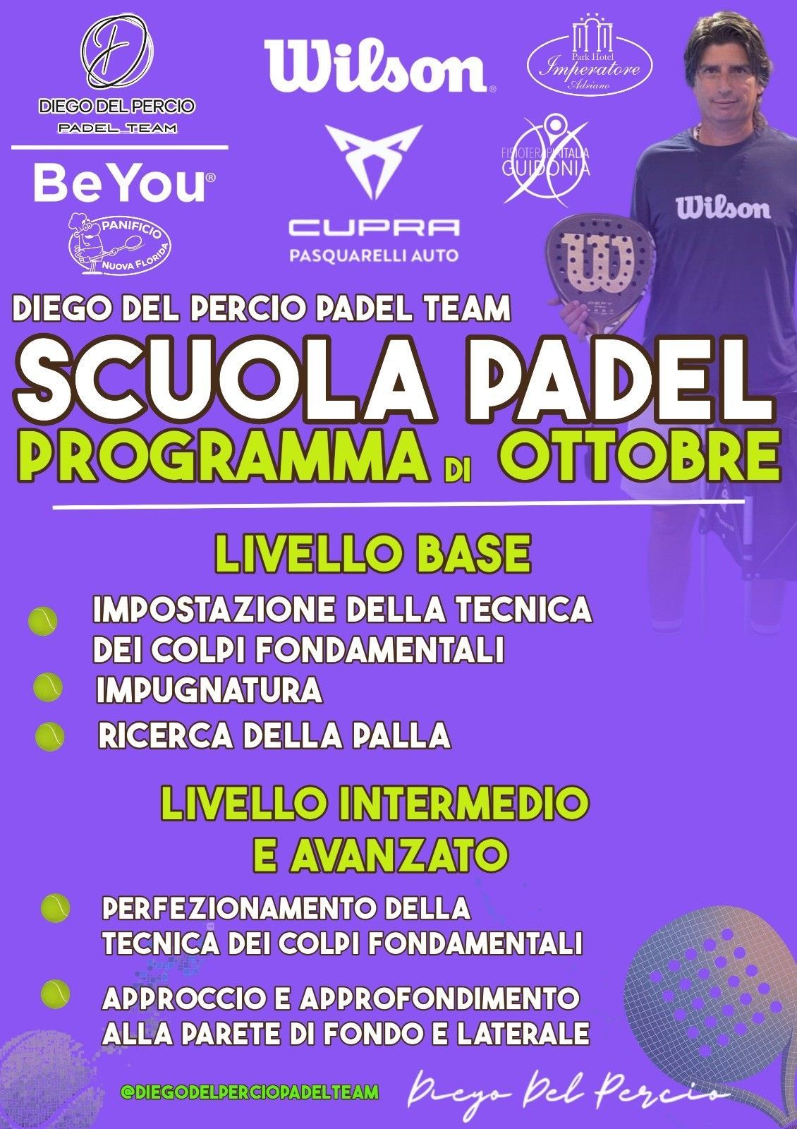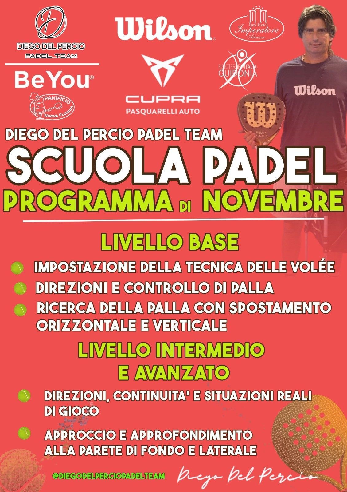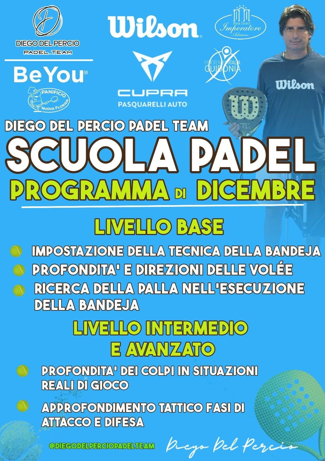 Presso il Diego del Percio Padel Team, offrendo sessioni di allenamento individuale e di gruppo una vasta gamma di programmi di formazione personalizzati adatti a giocatori di tutti i livelli.